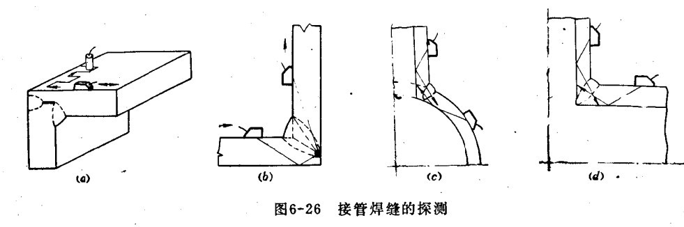 三、接管焊縫 接管焊縫的探傷方法,視工件的幾何形狀而定,一般可用橫波探測(cè),但在條件允許下,可用縱波探測(cè)危險(xiǎn)性缺陷,效果較好。