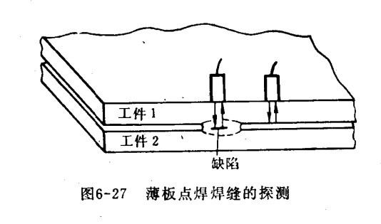 四、點(diǎn)焊焊縫探傷 對(duì)于薄板點(diǎn)焊焊縫的探傷方法,主要用探傷儀直探頭。