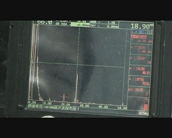 3.先將探頭發(fā)在被測件表面,觀察底波出現(xiàn)的位置、幅度及形狀 可以注意到,如果在探頭發(fā)射的超聲波傳遞路徑上,如果沒有缺陷,則在底波和始脈沖(時間零點)之間應(yīng)該沒有獨立信號出現(xiàn)。