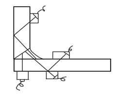 2 ,角焊縫。綜合使用斜探頭、直探頭,多面、多次探測(cè)。