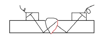 1 ,對(duì)接焊,焊縫余高未磨平、只能單面探測(cè)??墒褂眯碧筋^、觀察一次或二次回波,在焊縫兩側(cè)進(jìn)行掃查探傷。