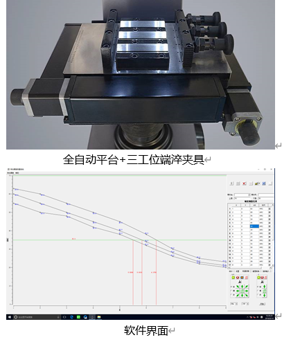11. 本機(jī)特別適合端淬試驗(yàn),可完全按照《鋼淬透性的末端淬火試驗(yàn)方法 GB/T225-2006 》的要求,設(shè)置硬度測(cè)試的路徑后一鍵完成測(cè)試工作,配備三工位夾持臺(tái),可實(shí)現(xiàn)三個(gè)端淬試樣的連續(xù)測(cè)定(夾持臺(tái)可增配至六工位) ;