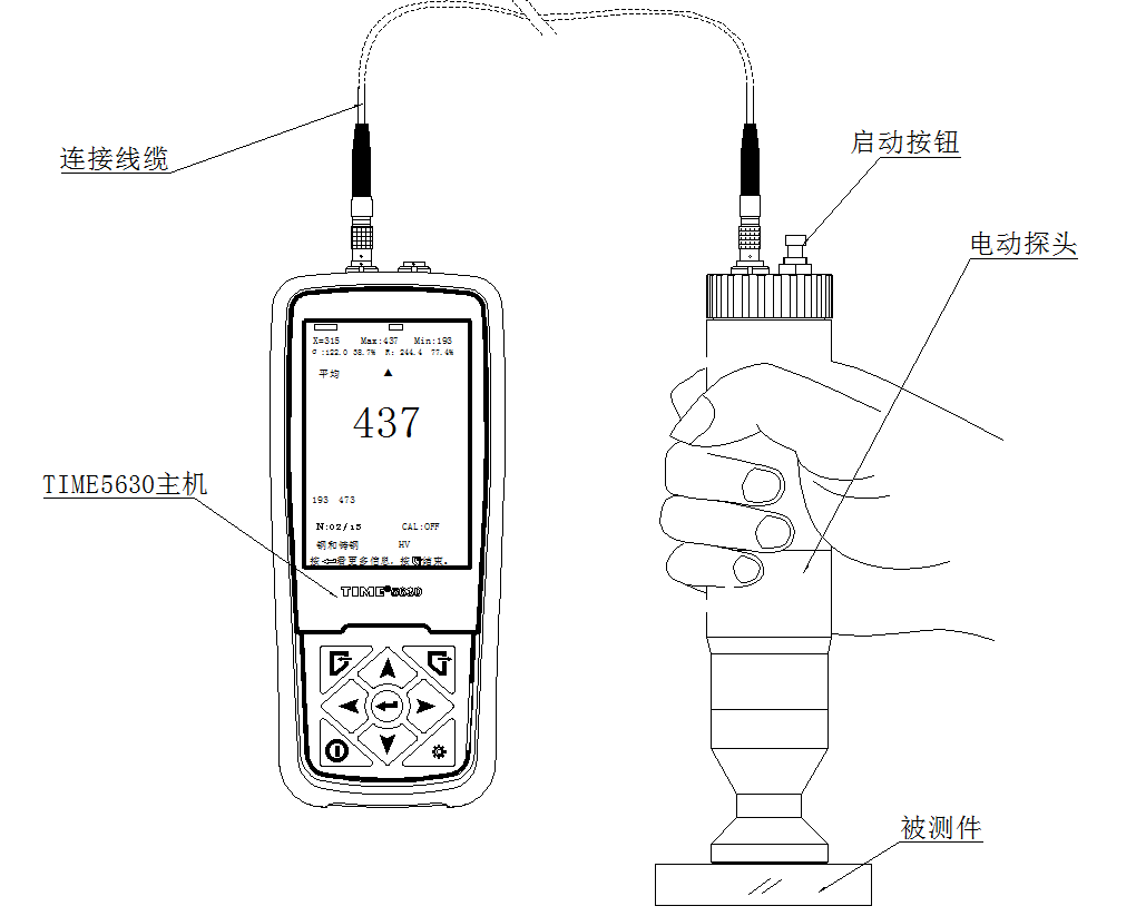 將探頭放置好后,按住啟動(dòng)按鈕,探頭內(nèi)部的電機(jī)啟動(dòng),開始測(cè)量,屏幕上依次顯示“請(qǐng)等待 … ”、“保持時(shí)間倒計(jì)時(shí)”,待屏幕中央顯示測(cè)量值且電機(jī)停止運(yùn)轉(zhuǎn),屏幕上再次出現(xiàn)“請(qǐng)開始測(cè)量”時(shí),可以進(jìn)行下一次測(cè)量。